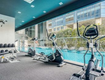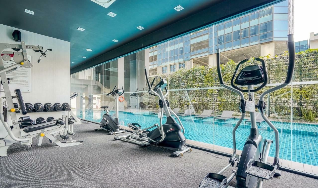 Fitness overlooking the swimming pool