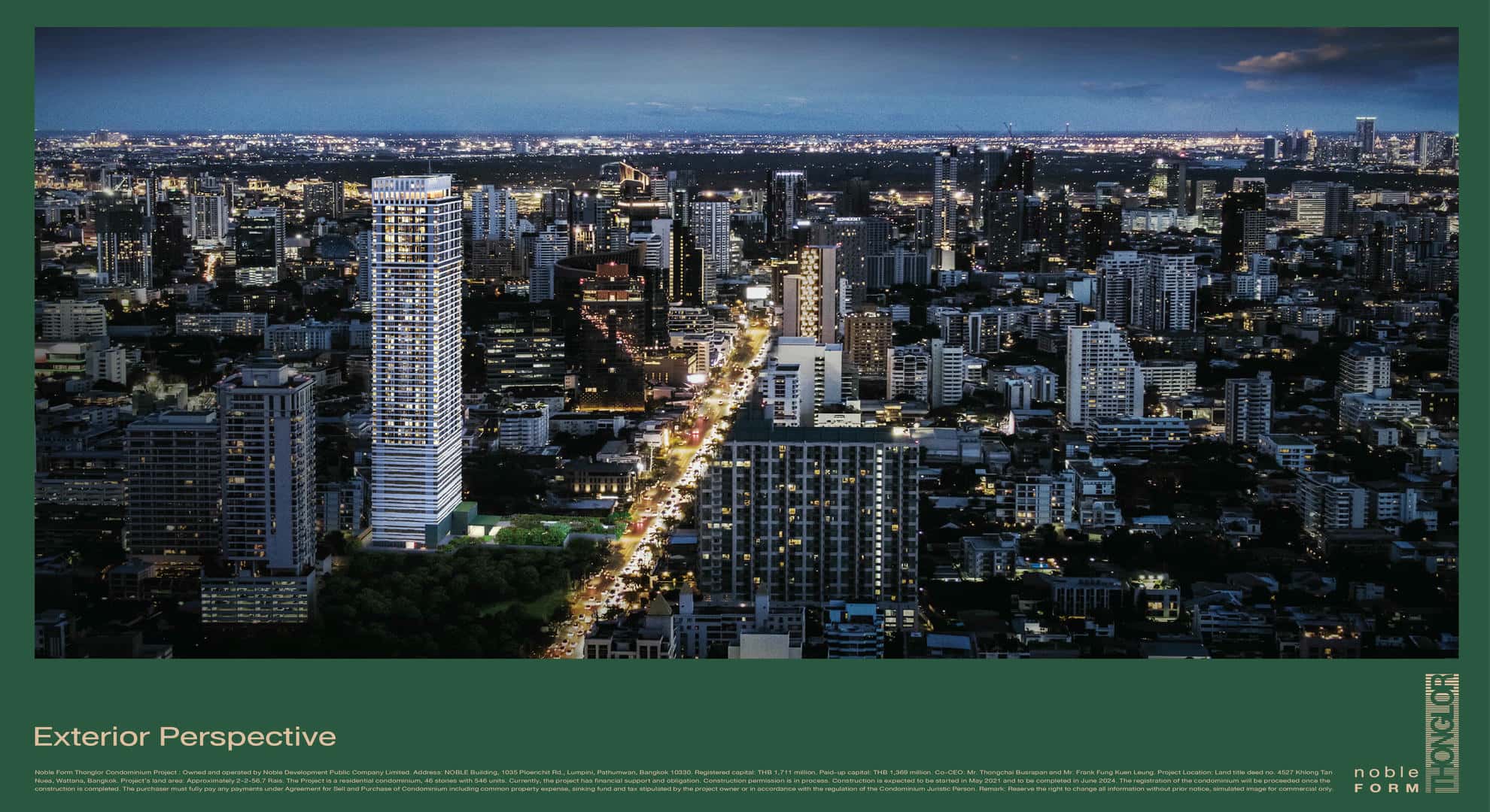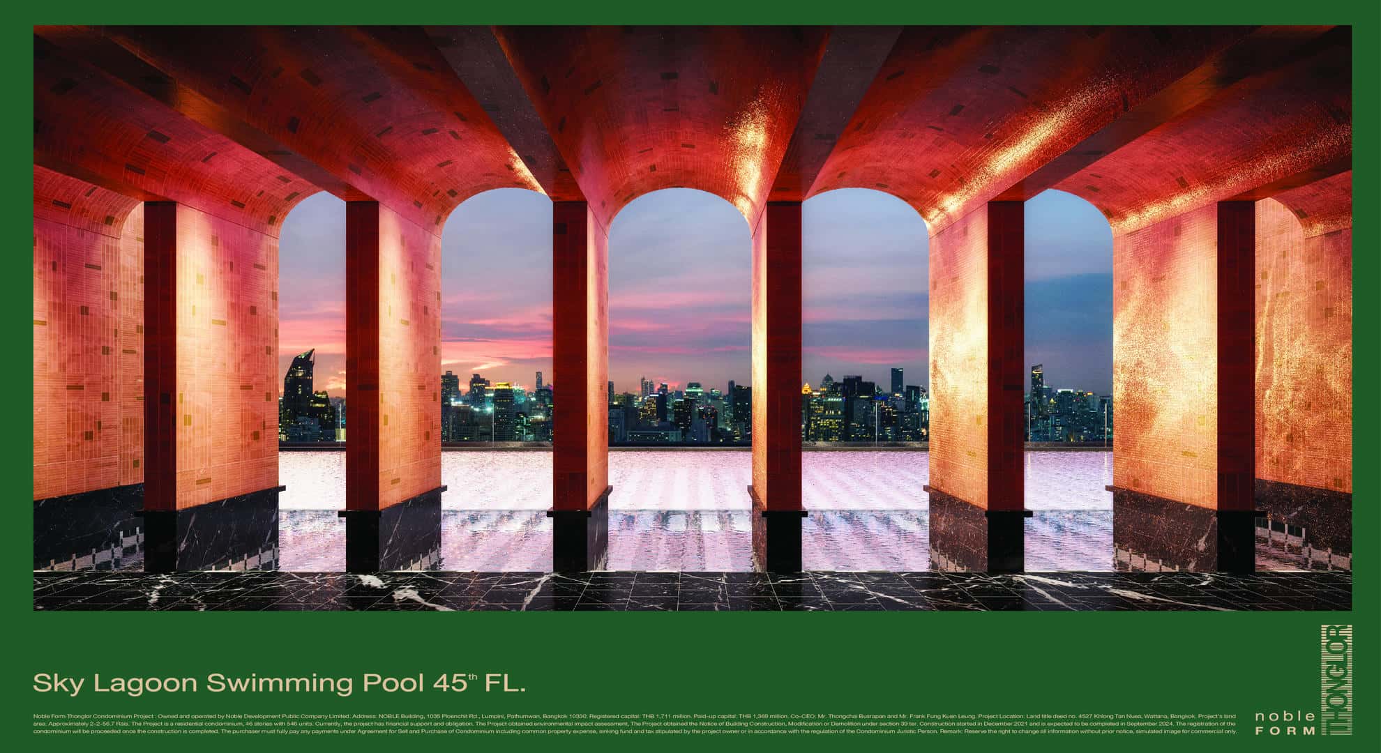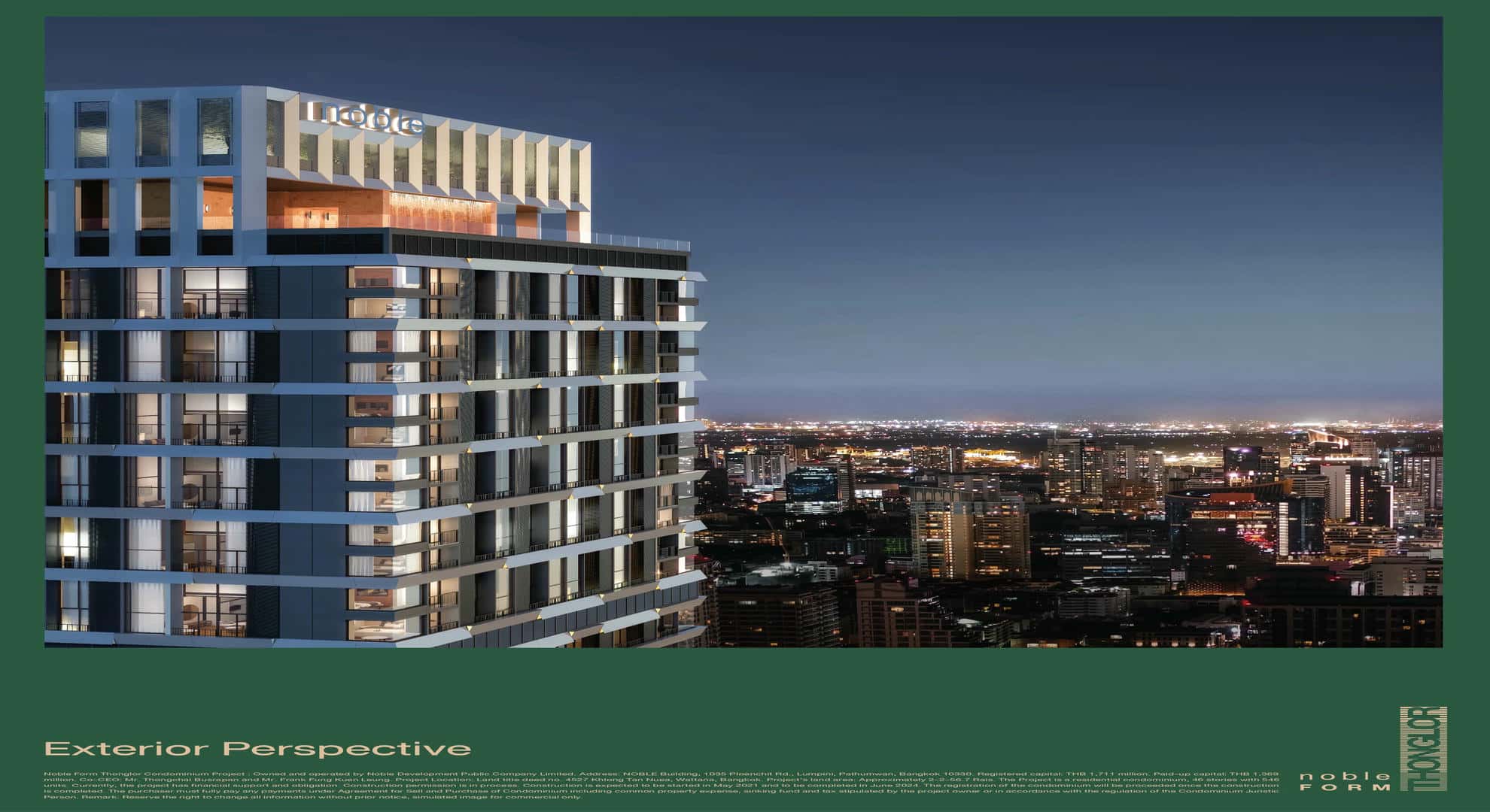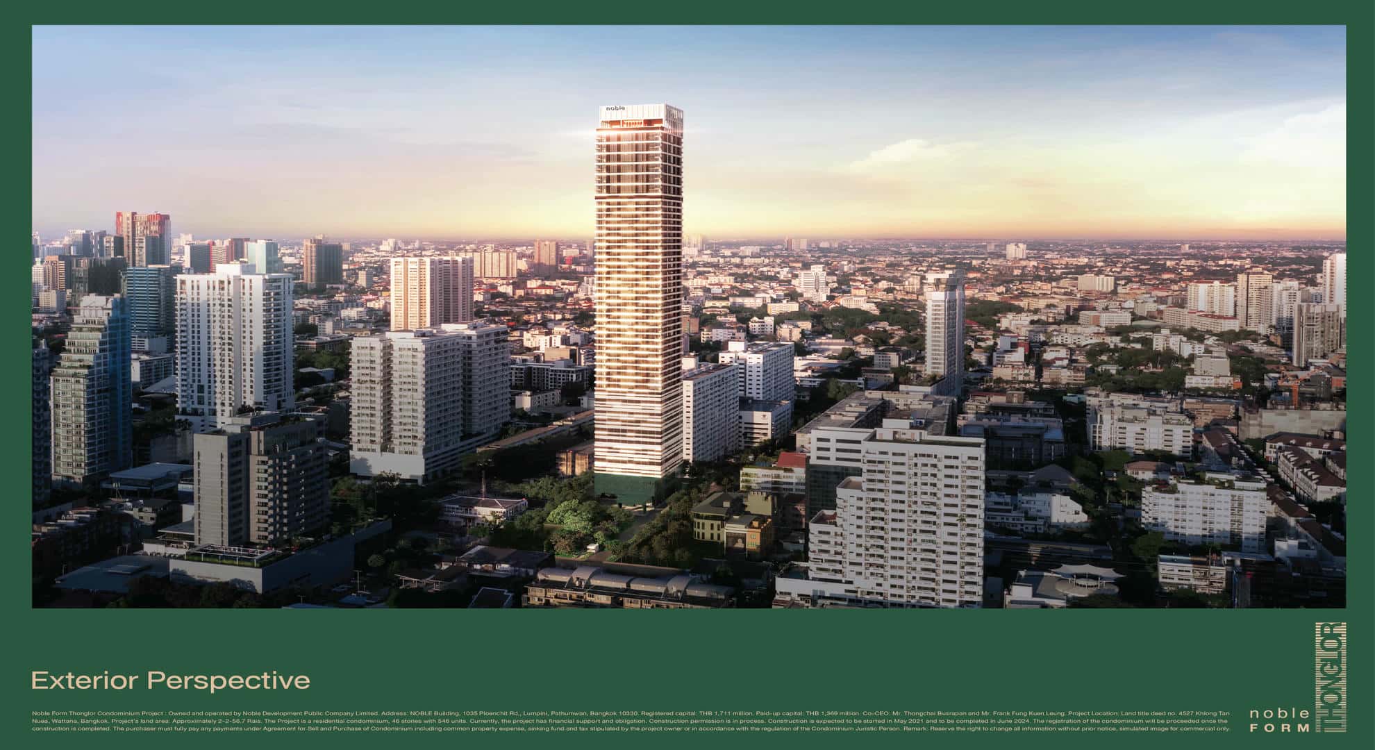 The project Noble Form Thonglor, which was completed in January 2024, is located in Khlong Tan Nuea, Bangkok. It has 546 units spread across 46 floors, and it was created by Noble Development, who is also responsible for The Embassy Wireless, Noble Create, and Nue Riverest Ratburana.